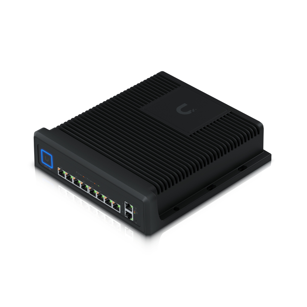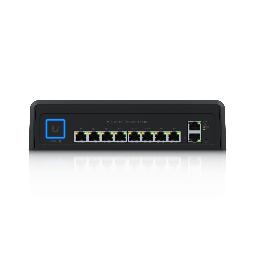 UniFi Switch Industrial (USW-Industrial); zorlu ortam koşullarında yüksek PoE gücü gerektiren cihazları beslemek için tasarlanmış, kompakt ama güçlü bir Layer 2 endüstriyel switch çözümüdür. 8 adet GbE PoE++ port, 2 adet GbE uplink, 430W toplam PoE bütçesi, fansız sessiz soğutma ve geniş çalışma sıcaklığı aralığı sayesinde; IP kamera, dış ortam access point, endüstriyel kontrolör, dijital ekran ve IoT altyapılarının aynı noktadan güvenilir biçimde beslenmesi gereken profesyonel sahalarda öne çıkar.